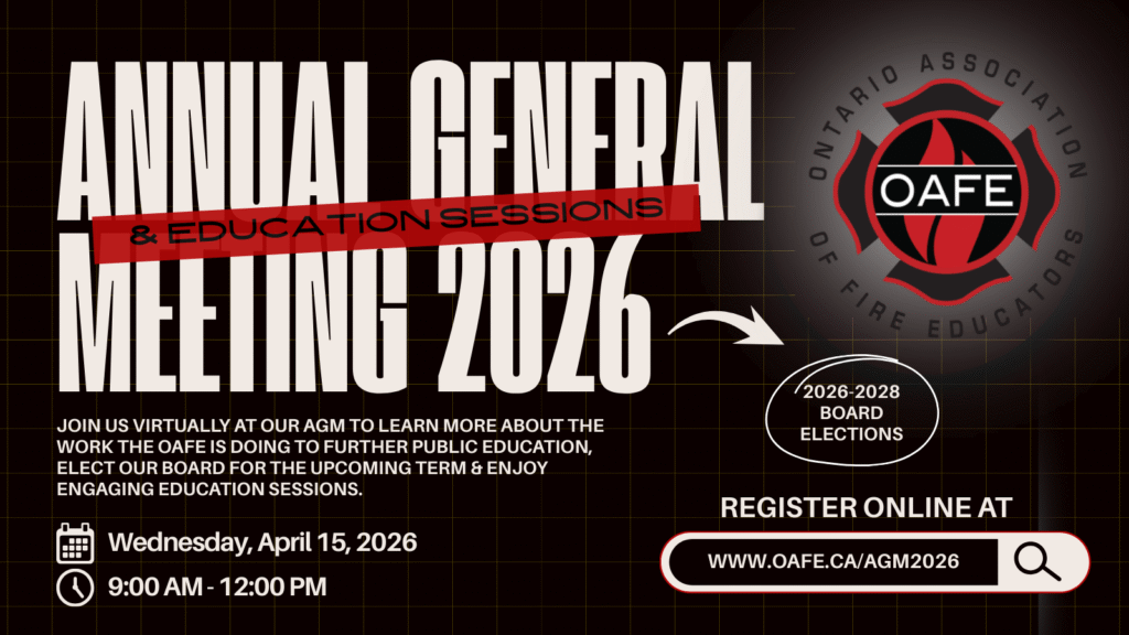 - An update from OAFE President, Shanyn Godward, regarding the OAFE and how we are working to further public education for fire departments across Ontario
